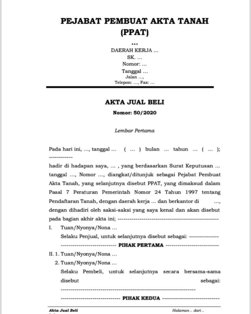 Bukti Peralihan Hak yang Sah: Akta jual beli rumah adalah bukti otentik yang menunjukkan bahwa hak atas properti telah berpindah dari penjual kepada pembeli. Tanpa akta jual beli rumah, sulit untuk membuktikan bahwa Anda adalah pemilik sah properti tersebut.